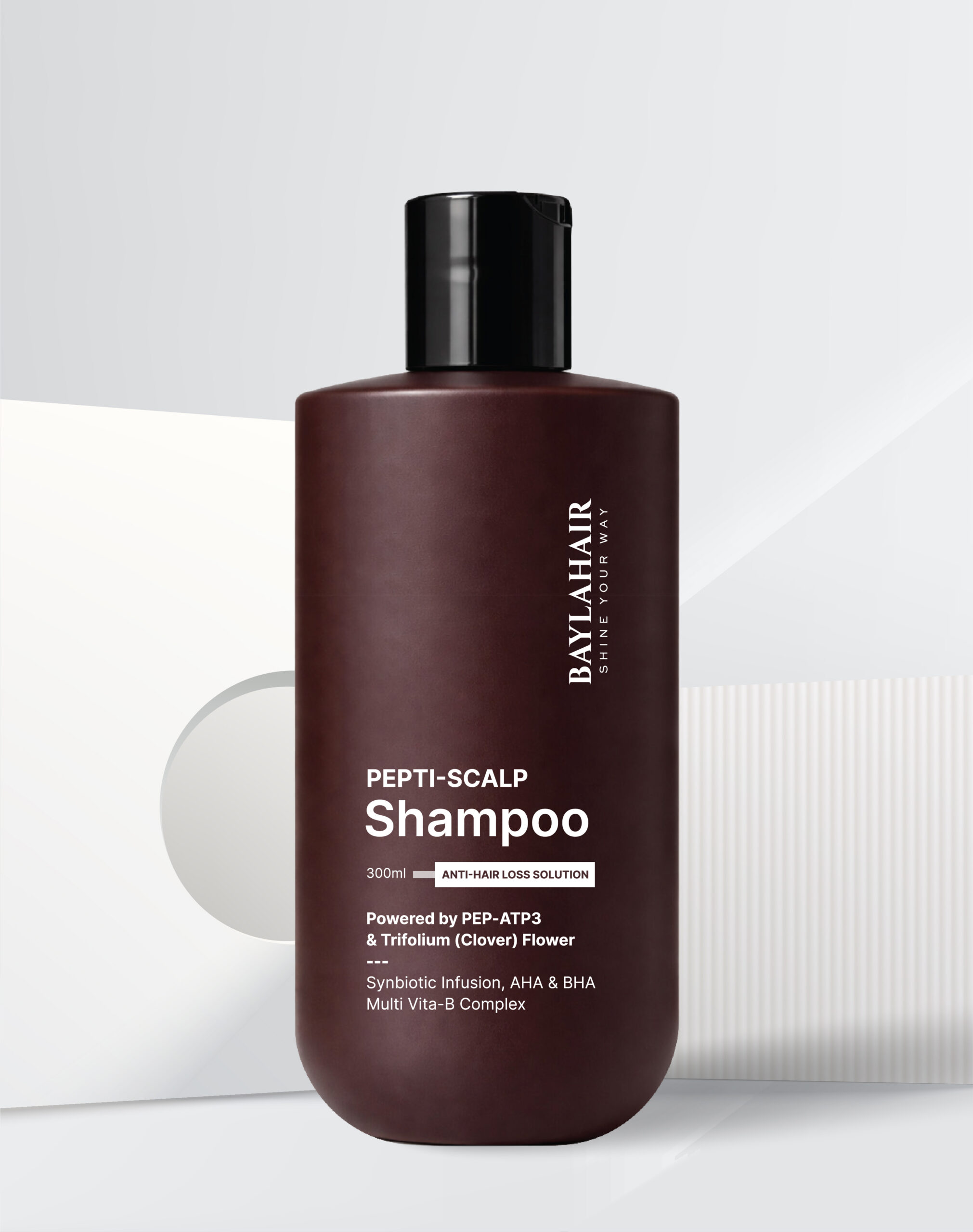 BAYLAHAIR Pepti-Scalp Shampoo – Step 1 of the ANTI-HAIR LOSS line – is a multi-action cleansing shampoo: anti-dandruff, excess oil control, and scalp exfoliation. This shampoo acts as a primer for the scalp, ensuring follicles are clear and ready to absorb active ingredients.