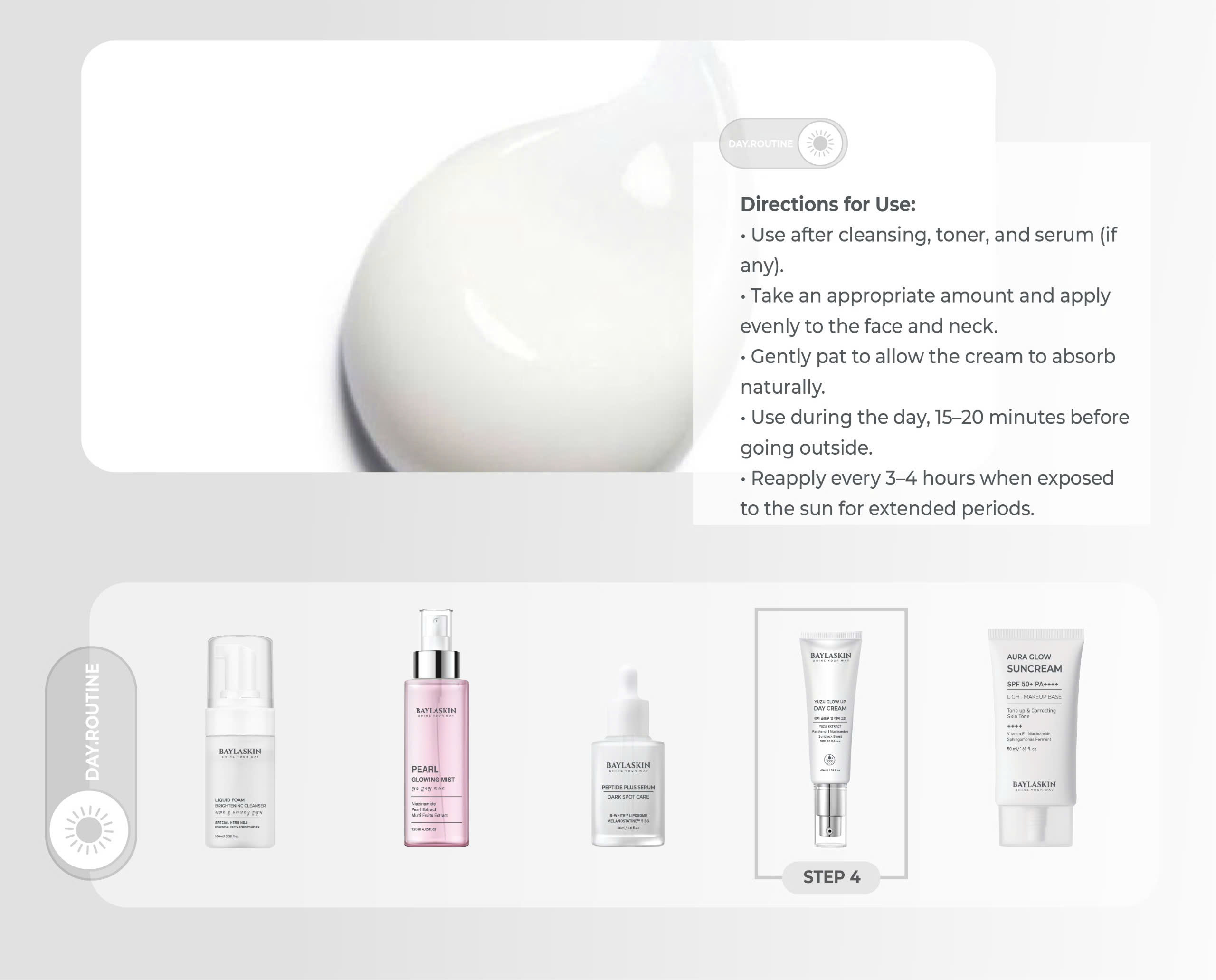 Yuzu Glow Up Day Cream SPF 30 PA+++ is a day cream that combines a natural tone-up effect with gentle sun protection, helping the skin become radiantly rosy without leaving a white cast.